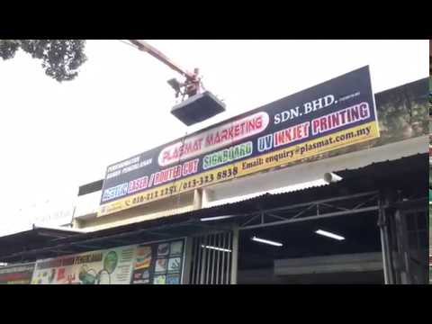 INSTALLATION SIGNBOARD AT 1ST FLOOR BY USING SKYLIFT